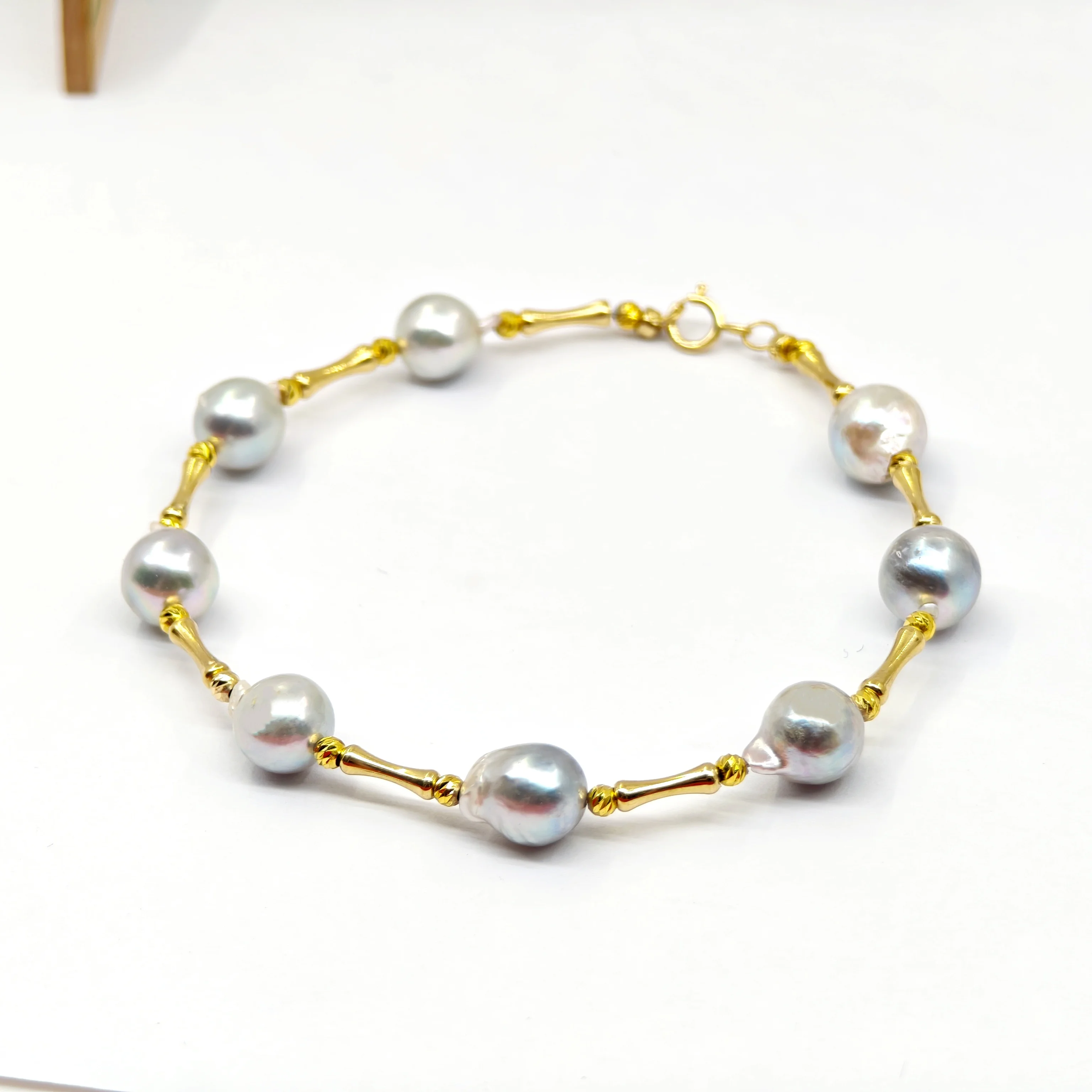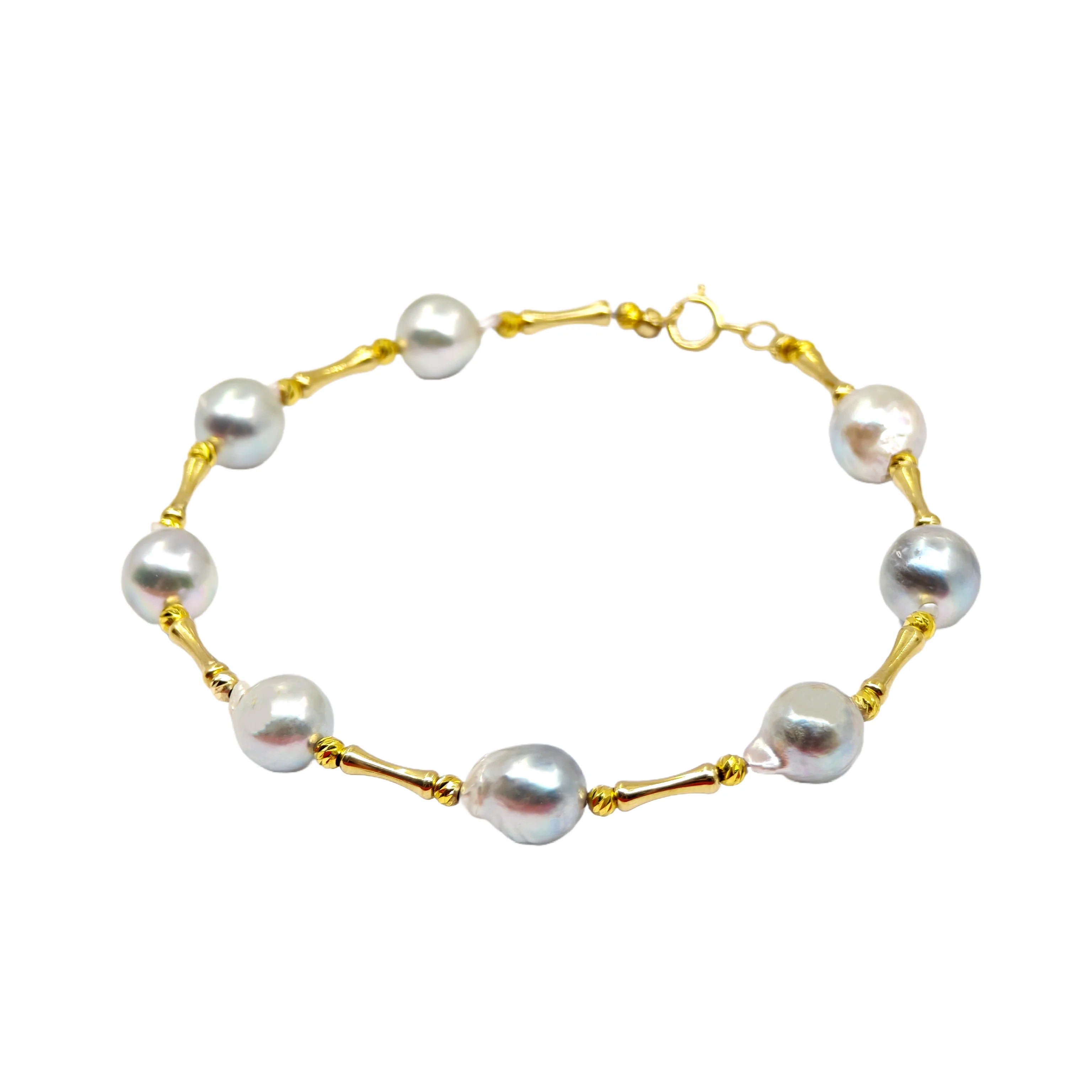 18K Solid Gold Bracelet with Natural Pearl Fine String Unisex/Women's - USMJ0243